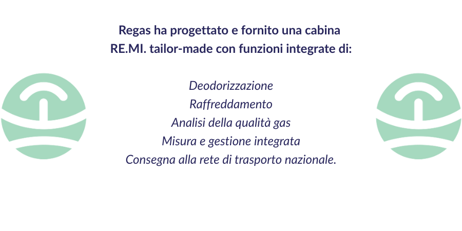 In questo ambito, Regas progetta sistemi chiavi in mano che integrano deodorizzazione, compressione, raffreddamento, analisi e misura del gas, conformi ai requisiti tecnici di DSO e TSO.